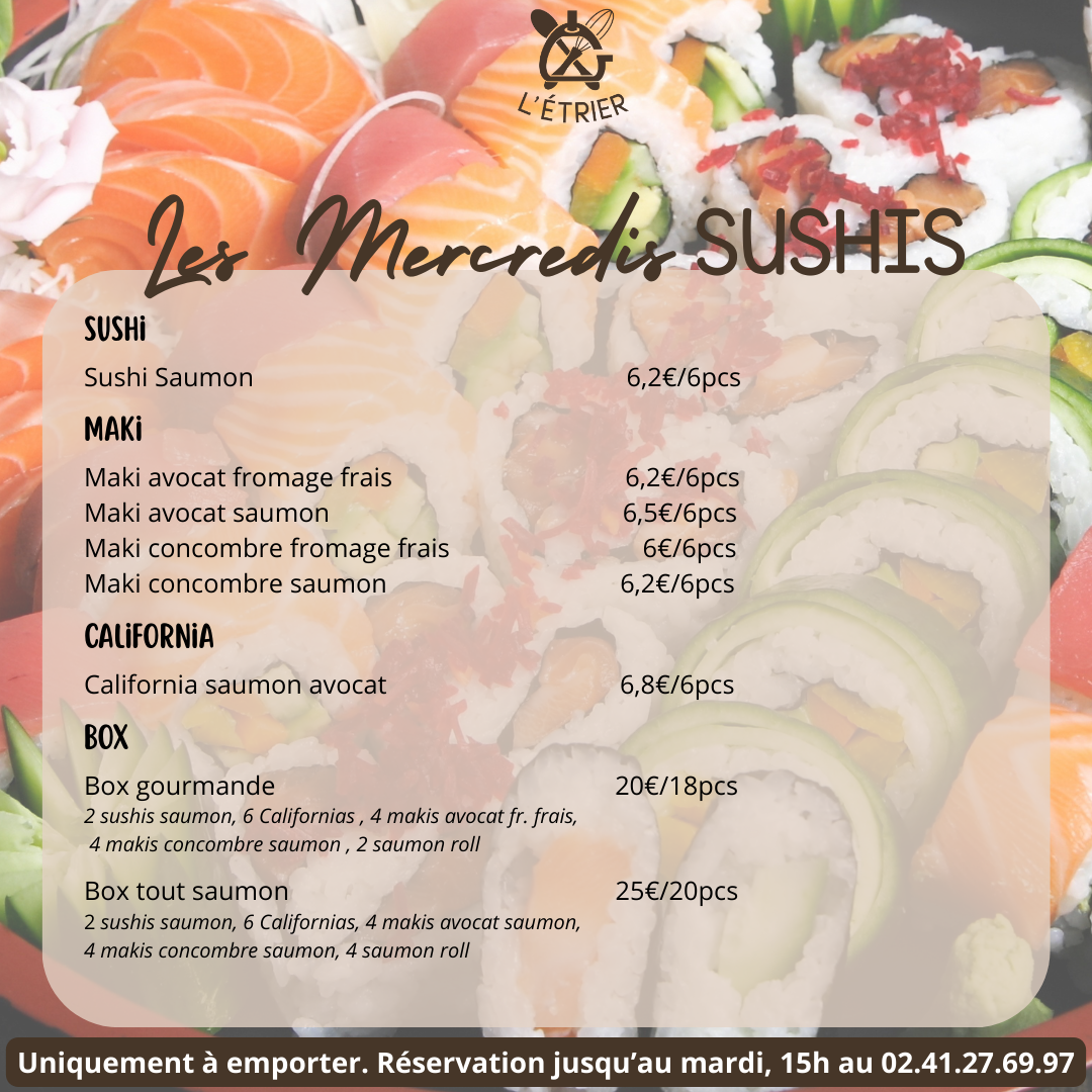 Chaque mercredi soir, retrouvez les soirées sushis.